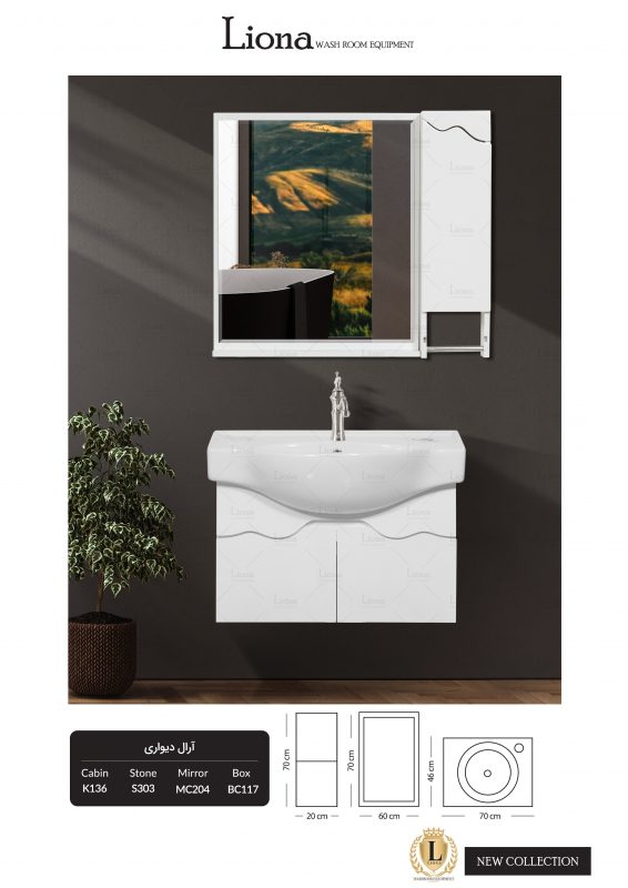 کابینت روشویی آلفا صفحه چوب دیواری سفید چام